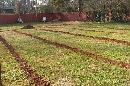 At Asheville Geothermal we have developed a special low-impact installation technique for horizontal loopfields. In a nutshell, we use special equipment to dig a trench about 7' deep by 6.5" wide and install vertical slinky geothermal loops. This technique for a horizontal geothermal loopfield is new, and no one before us has done it successfully. We at Asheville Geothermal have succeeded because we developed the special tools needed to both take the dirt out of the trench and put the dirt back in the trench with full compaction.